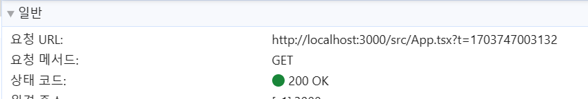 위와 같이 이번에는 200 응답상태가 전달되었고, App.tsx 파일 내용을 다시 전달받은 것을 알 수 있다.