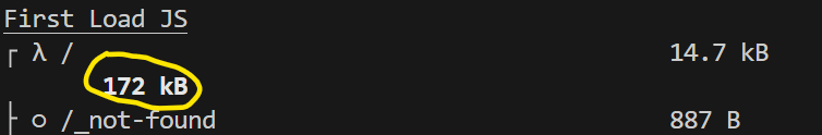 위처럼 빌드되는 JS 파일의 크기가 172 kB에서 158 kB로 줄어든 것을 확인할 수 있다.