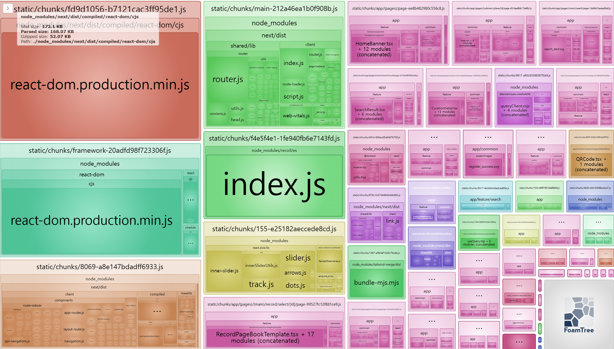 위와 같이 시각적인 결과를 활용하여 불필요한 코드로 인해 크기를 많이 잡아먹는 모듈을 찾아낼 수 있다.