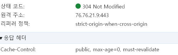 위의 리소스는 max-age=0 으로 설정되어 있으므로, 매 요청마다 서버에 조건부 요청을 보내게 된다.