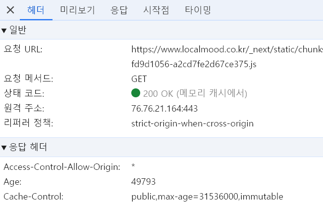 또, 그 이후에 해당 페이지에 대한 네트워크 요청을 확인해본 결과