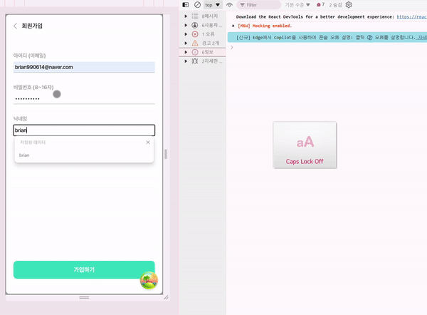이제 최소한 가입하기 버튼을 누르면 로딩 UI가 뜬다는 사실 & status 200으로 응답이 온다면 가입 성공 페이지로 무사히 이동된다는 사실은 보장할 수 있게 되었다.