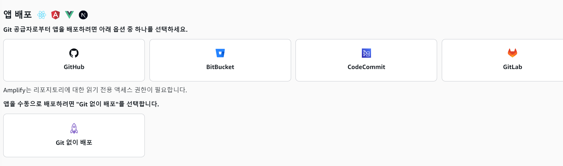 아마 대부분 Github를 활용할 것이라 생각된다. 나도 Github를 선택한 뒤 다음으로 넘어갔다.
