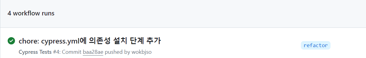 actions 탭에서도 Cypress CI가 성공적으로 마친 것을 확인할 수 있고,