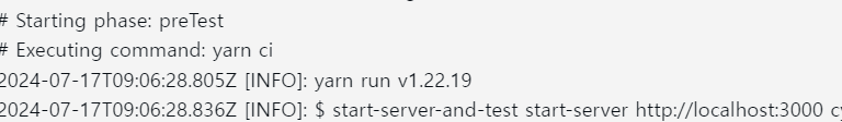 빌드 과정에서 package.json에 명시해 둔 ci 명령어가 실행되는 것을 확인할 수 있다!