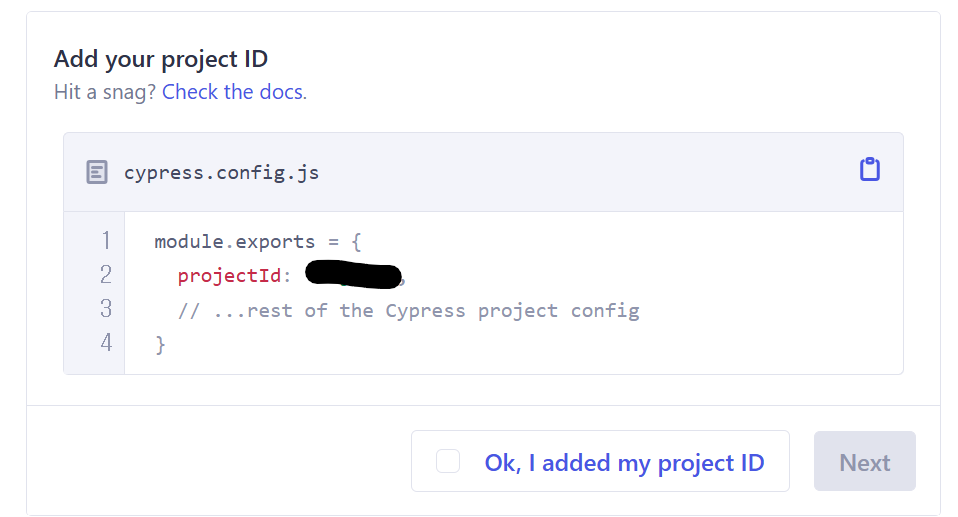 이 ID를 cypress.config.ts 파일에 명시해주면 된다.