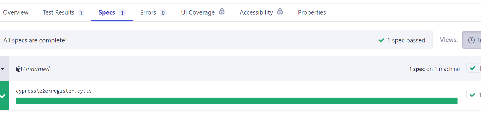 Cypress Cloud에서도 테스트가 성공적으로 마친 것을 UI로 보여주는 것을 확인할 수 있다!