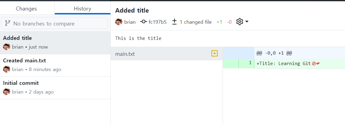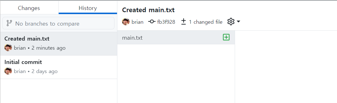 위와 같이 처음에 자동으로 있었던 .gitattributes 가 Initial commit와 같이 방금 진행한 Commit이 기록되어 있는 것을 확인할 수 있다!!