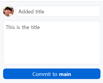 그 후 원하는 제목을 써 주고 (이미지에서 Created main.txt 칸) Commit to main 버튼을 클릭해준다.