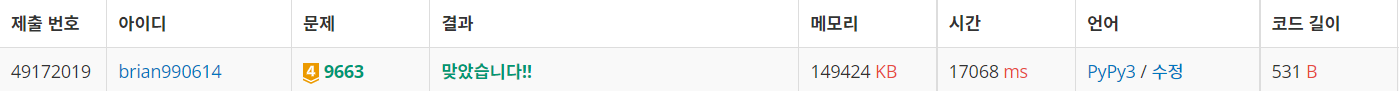 PyPy3로 제출하였다.