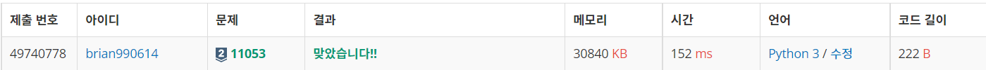 | 백준(baekjoon) 11659번: 구간 합 구하기 4(실버 3, 파이썬 PYTHON) - 누적 합 (0) | 2022.10.08 |