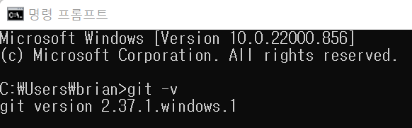 2. console창에 가서 git -v(안되면 git -version)입력(설치된 git 버전 알려줌)