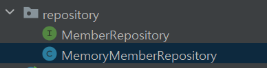 repository 패키지 안에 MemoryMemberRepository 라는 Class를 하나 만들어주자.