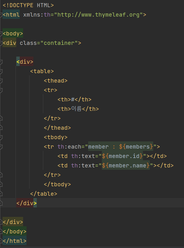 memberList.html 파일에 위와 같은 코드를 작성해준다.